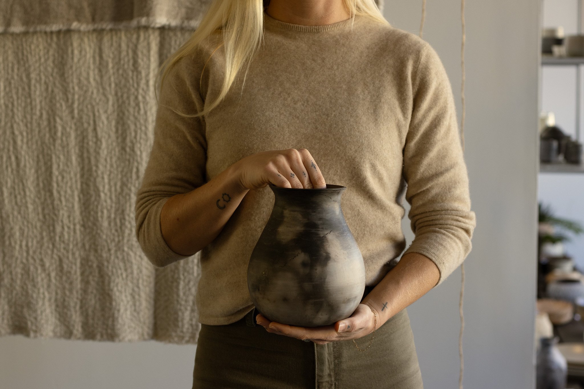 Meet Alex Roby, an independent female artist, currently based in the United States. Each of her vessels embodies a juxtaposition of strength and fragility, mirroring the delicate contrasts woven throughout nature and our ever-evolving lives. She is drawn to what feels unearthed and inherently wild, creating work that appears both ancient and newly formed.